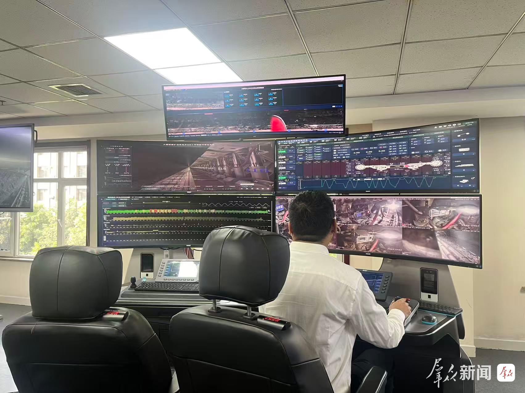 记者了解到,“太空舱”大屏显示综采设备的实时数据,反映着矿压、工作面采高、液压支架姿态等。操作人员坐在“太空舱”内,就能对矿井现场一目了然。