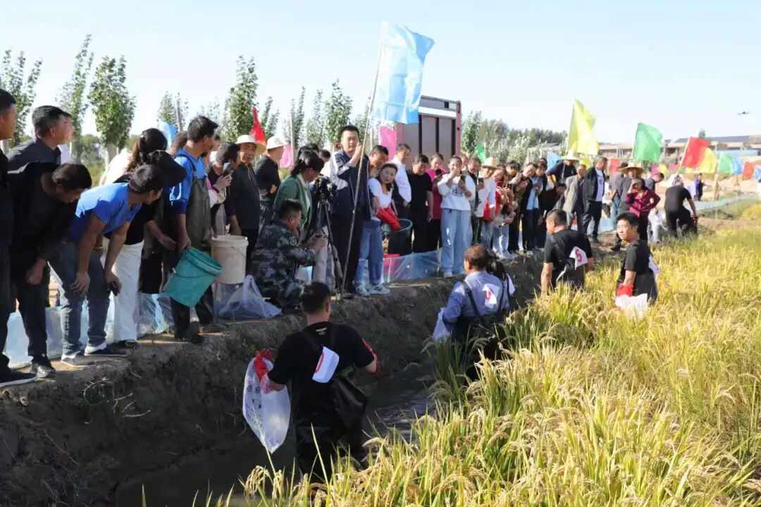 9月23日,以“大美鱼河谱新篇·稻花香里说丰年”为主题的2025年中国农民丰收节榆阳区鱼河镇水稻开镰活动在鱼河镇郑家沟村举办。区委副书记王新刚宣布开镰。