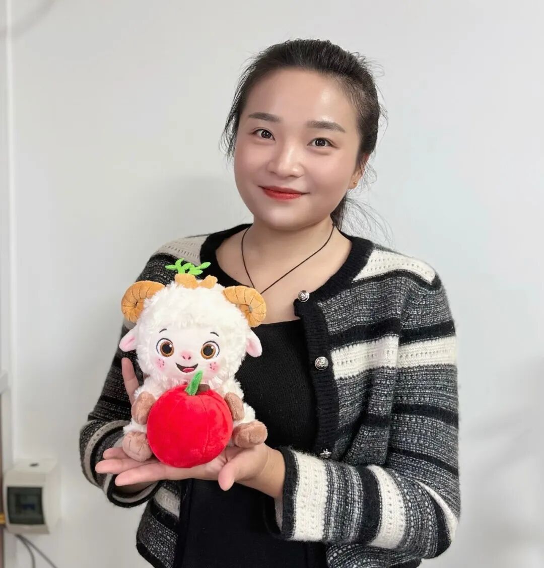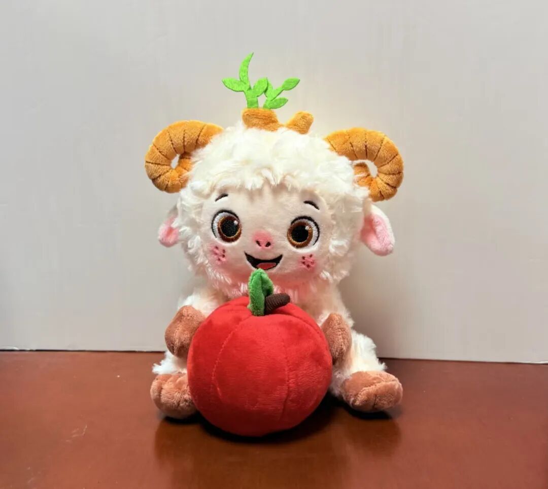 这款造型憨态可掬的布偶,并非凭空想象,其设计灵感正来源于支撑子洲县域经济的三大主导产业。憨态可掬的“绒山羊”身着雪白卷毛,标志性的棕色弯角,体现子洲超细绒羊产业的独特性。头顶的绿色枝叶装饰,灵感源自子洲特产黄芪的植株形态,巧妙融入了当地道地药材黄芪的文化符号。怀中抱着的红色苹果,呼应子洲山地苹果产业,将当地优质苹果的形象具象化,凸显子洲苹果的品牌特色。