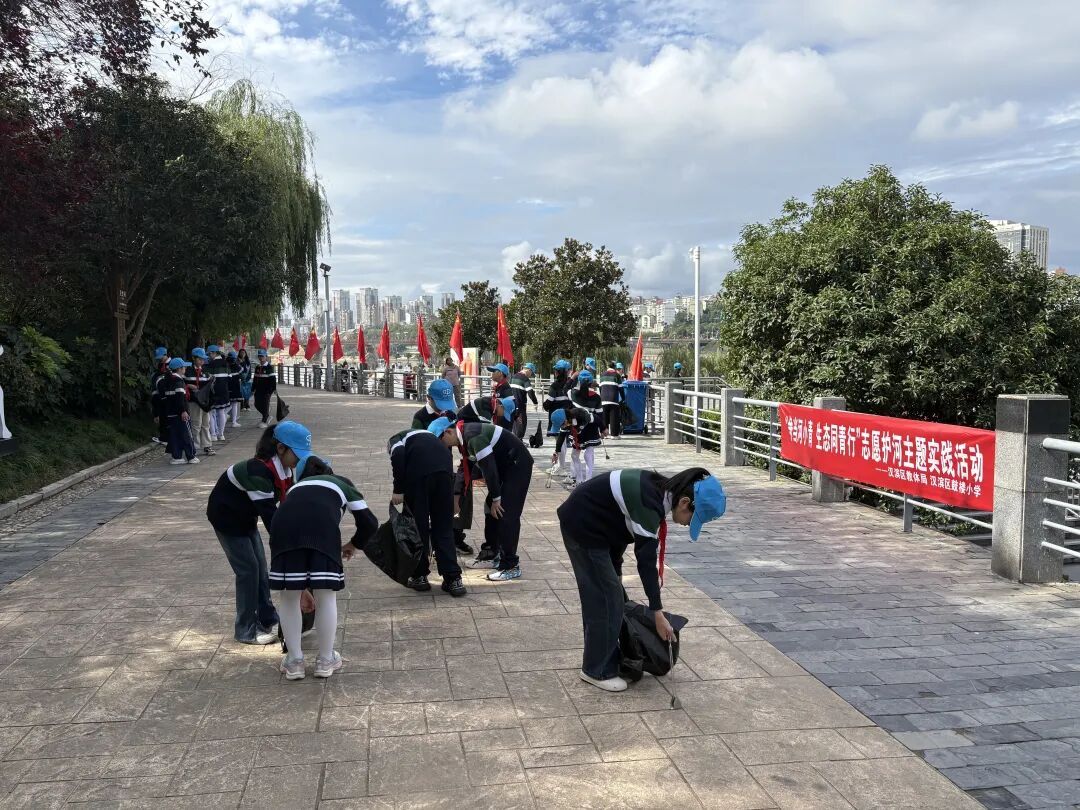 课程结束后,在工作人员的带领下,同学们一个个化身“河小青”,手持火钳、垃圾袋沿水西门河边开展垃圾捡拾、不文明行为劝导环保行动,用实际行动守护河道清洁。工作人员全程扮演“领巡员”,一边协助协调现场秩序,一边向同学们讲解河流污染的危害,让大家真切感受到“护河不是口号,而是我们的身边事”。