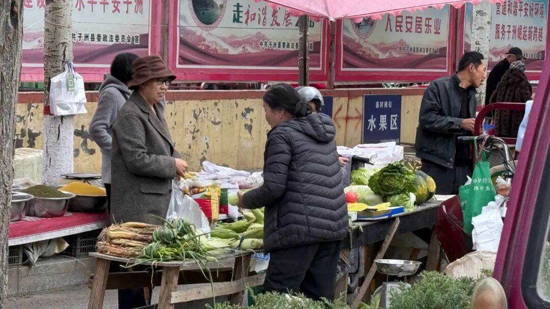 秋意渐浓,寒风初起,榆林市子洲县却涌动着一股暖流。县城农贸市场大门两侧与颐和小区邻里中心路口,悄然出现了一排排整齐的临时摊位。摊位上,带着露水的新鲜白菜、泛着青光的辣椒、饱满诱人的瓜果……这些来自城周边农户自家院落的“绿色出品”,不仅丰富了市民的“菜篮子”,更成为连接城乡、温暖人心的一道独特风景。