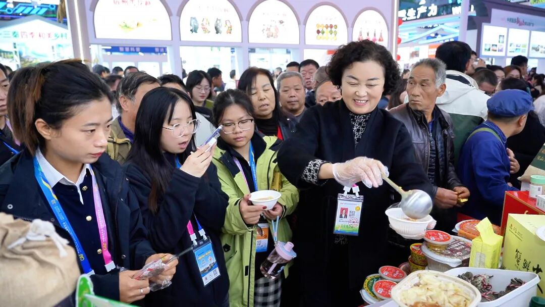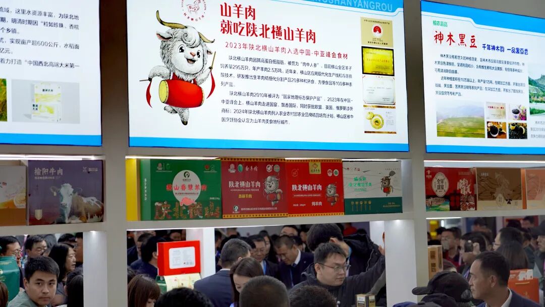 在横山特色展区,作为横山农业 “引领产业” 的羊产业,不仅带来了细腻无膻、曾入选 “国宴菜单” 的陕北横山羊肉,更展示了从养殖到加工的全产业链成果。围绕 “稻渔综合种养” 的绿色循环农业,蟹田米、稻田蟹等产品因品质优良获江浙沪市场认可,年产值达1.7亿元;此外,国家地理标志产品 “横山大明绿豆”、满足世界优生区七大黄金指标的山地苹果、药性超国家药典标准的远志中药材,以及羊主题手办等文创产品同步亮相,全方位展现横山 “农特产品+文化创意” 的融合魅力。