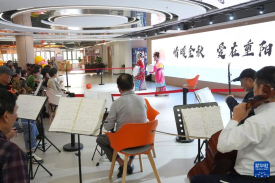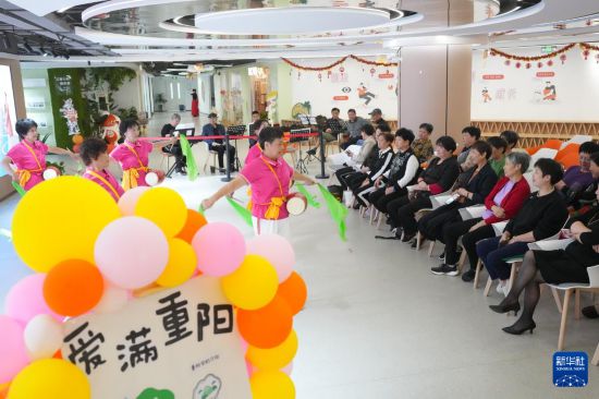 浙江省嵊州市江南社区是浙江省级未来社区,临近重阳节,社区老人在邻里中心参加了丰富多彩的重阳节活动。