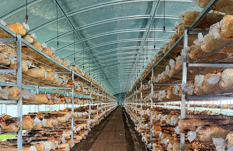 面对缺水实际,东坑镇将突破口定在节水农业。经调研,滑子菇种植以其节水优势成为首选。种植时配套智能灌溉、微喷带等技术,可实现水资源精准管控。基地物联网设备实时监测棚内温湿度,微喷系统按需供水,用水量精确到每平方米。数据显示,滑子菇亩均用水仅60立方米,较传统玉米节水60%,每亩每年还能节省水电费约100元,既减轻了水资源压力,又降低了种植成本。