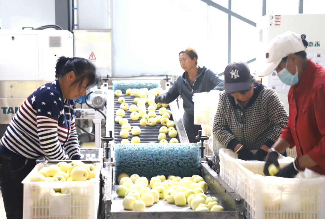 近日,笔者走进绥德县赵家坬村山地苹果“黄元帅”的包装现场,8条智能选果线正在运转,通过传送带将选出的大小合格、品质好的果子运至装箱线,工人们熟练地给果子套网、再装箱、封口、搬运,一派热火朝天的繁忙景象。