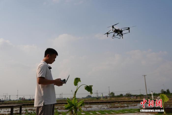 黄鑫使用无人机检查田间情况。尚世翔 摄