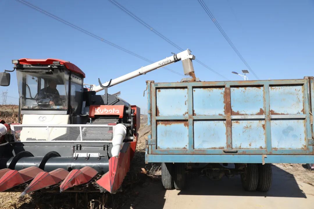 高粱籽粒被装上运输车