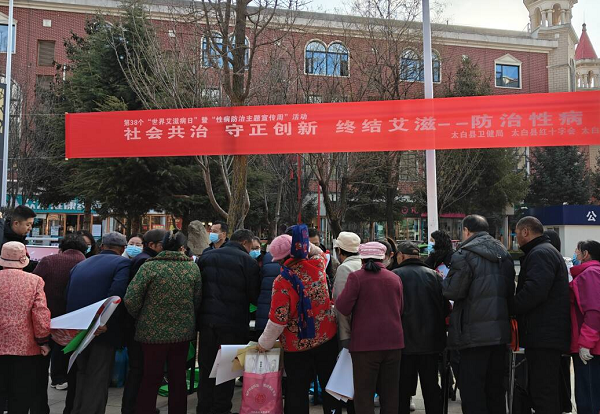 为进一步落实《陕西省遏制与防治艾滋病规划(2025-2030年)》工作要求,贯彻“预防为主”理念,营造全社会共同参与艾滋病防治良好氛围,在第38个“世界艾滋病日”宣传日当天,宝鸡市太白县卫健局、公安局、妇联、团委及疾控中心等11家单位在县城街心广场开展了集中宣传活动。
