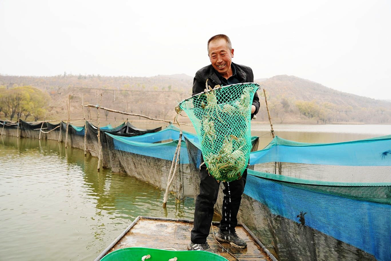 图为近日,永顺水产养殖专业合作社社员打捞品质上乘的满黄辽蟹。