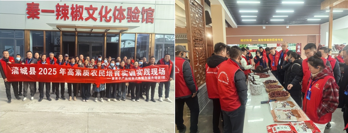 学员们首站走进兴平市,重点考察了兴平秦一辣椒制品有限公司和兴平阜盛农业科技有限公司等企业。辣椒产业与蒲城的酥梨、西甜瓜同属特色经济作物,其从种植到制成品的全链条整合模式,特别是通过深加工将初级农产品转化为标准化商品、显著提升附加值的实践,为蒲城特色产业的升级提供了直接参照。这回答了“如何让好产品卖出好价钱”的初级问题。
