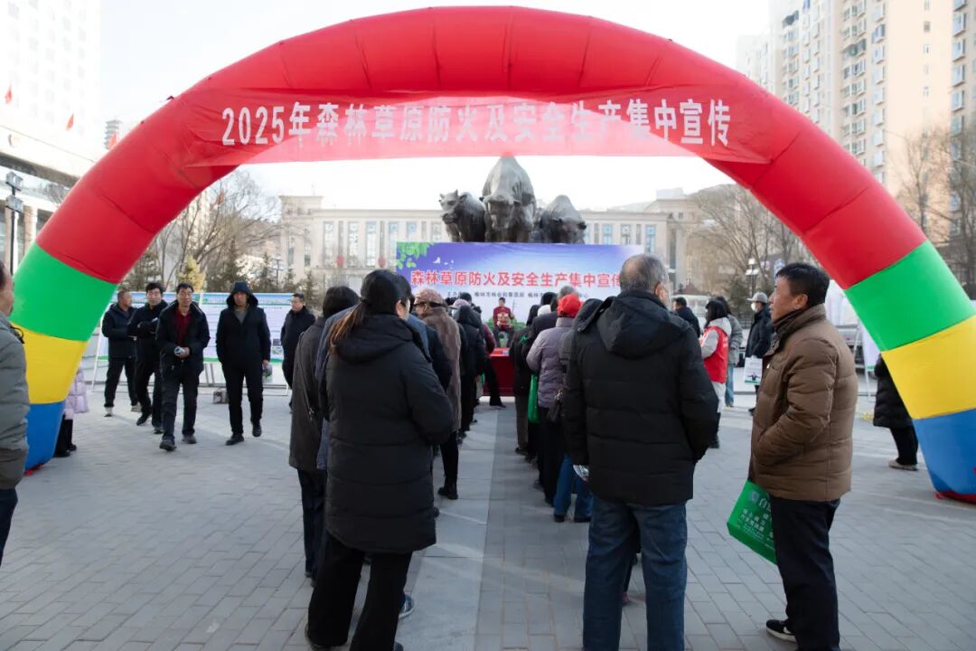 活动现场,工作人员提前搭设好宣传展台,整齐摆放各类安全生产、森林草原防灭火宣传手册及应急物品,吸引大批群众驻足咨询。
