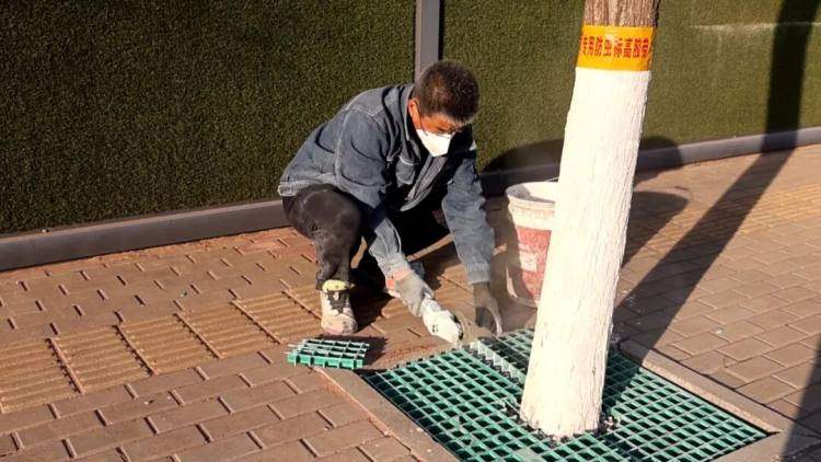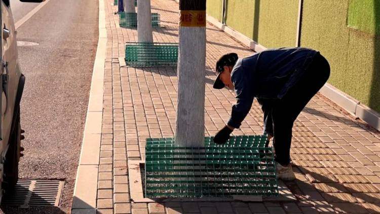 安装现场,绿化工人将树穴中的杂物和浮土清理干净,认真平整回填,根据树穴的大小“量体裁衣”,将格栅纵横对齐、垂直排布,稳稳嵌入树穴,确保与地面无缝平齐。
