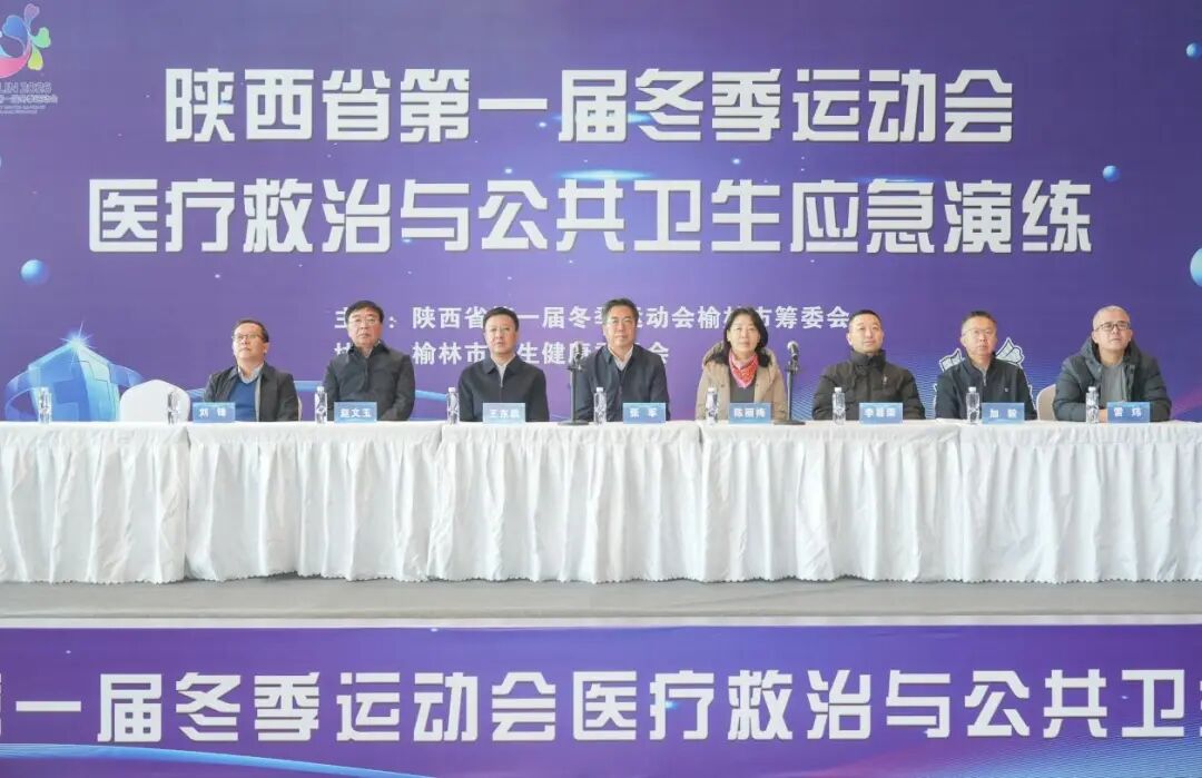 12月23日,陕西省第一届冬季运动会医疗救治与公共卫生应急演练在榆林会展中心举行,筑牢赛事安全“生命线”,全面检验医疗保障应急处置能力。省一冬会市筹委会副秘书长王东敦、省一冬会市筹委会医疗卫生部部长张军、西安交通大学第一附属医院榆林医院党委书记赵文玉及市筹委会相关部室领导出席了本次活动。