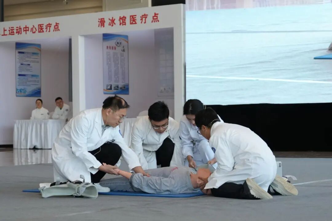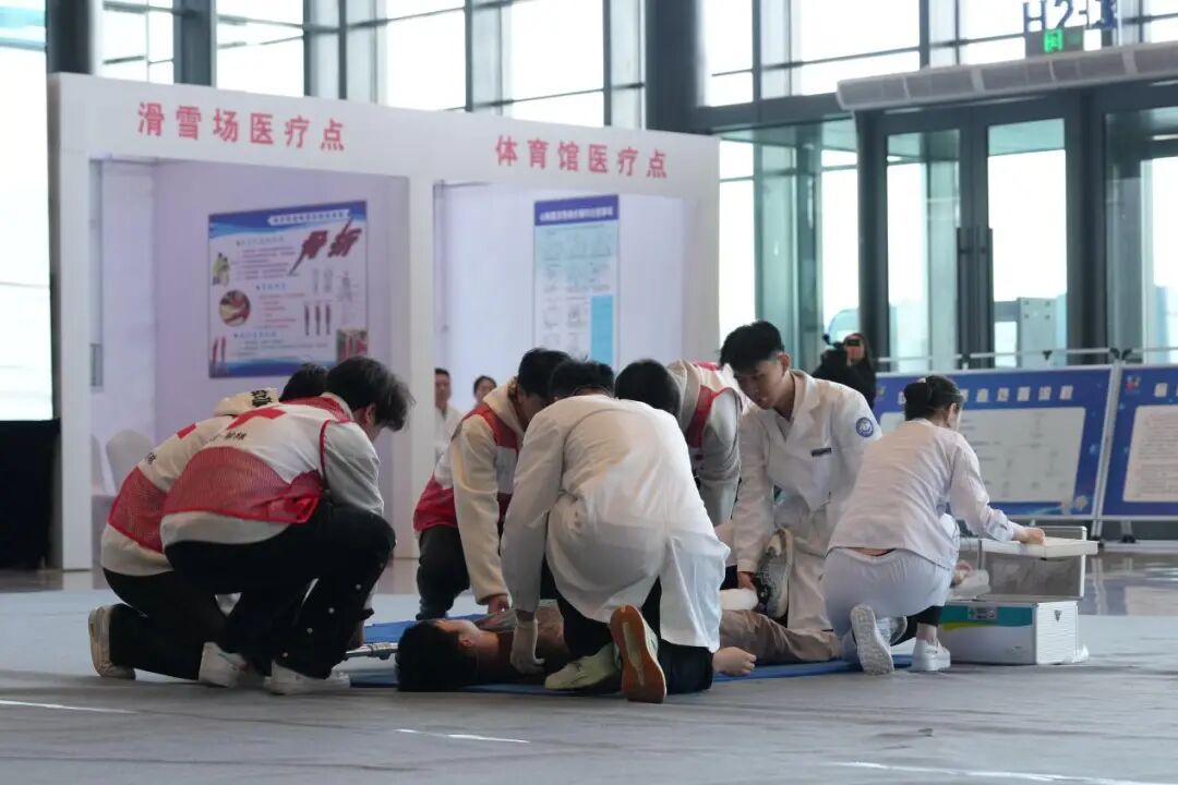 本次演练采用场外模拟视频与现场实景演练相结合的形式,聚焦冬运会赛事特点,以“人民至上、生命至上”为理念,全面模拟赛事期间可能发生的失温、切割伤、骨折、心肺复苏等损伤救治。