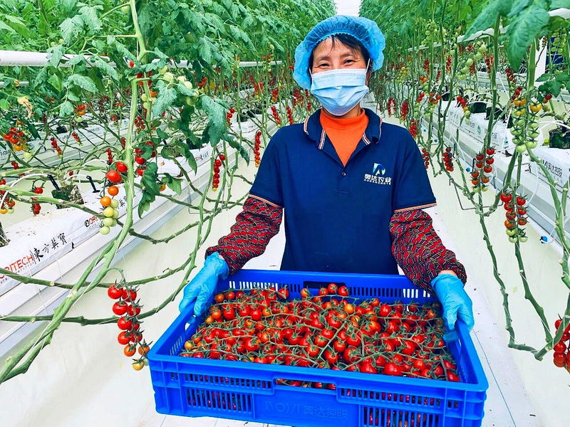 仲冬时节,陕西杨凌秦农智慧农业科技产业园的智能温室里,樱桃番茄迎来丰收。这里依托北纬34度的自然优势与13套智能系统,靠数据算法精准调控种植,年产优质樱桃番茄900—1000吨。产品通过全渠道热销,今年预估产值达1200万元。未来,该园区将持续研发创新,助力乡村振兴。图为近日,工人展示采收的新鲜樱桃番茄。
