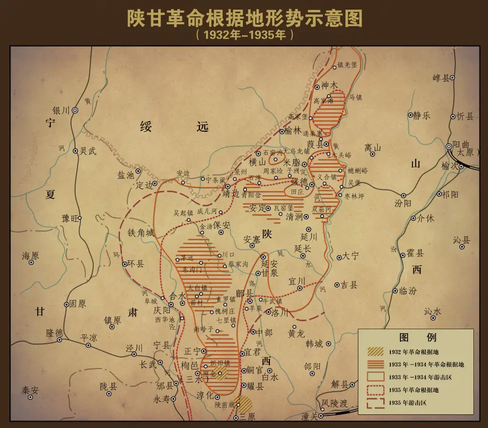 陕甘革命根据地形势示意图(1932年—1935年) 绥德革命纪念馆 崔亚东提供