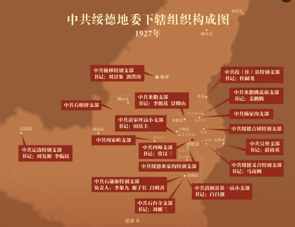 中共绥德地委下辖组织构成图(1927年) 绥德革命纪念馆 崔亚东提供