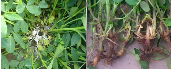 (左边:白绢病 / 右边:根腐病)