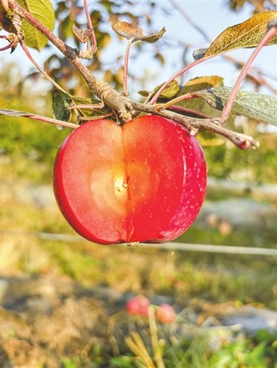 青岛农业大学园艺学院苹果育种团队负责人、国家苹果产业技术体系岗位专家张玉刚,介绍了“红丹”苹果的育种历程与品种特性。他表示,“红丹”苹果果肉鲜红,口感更脆更甜。