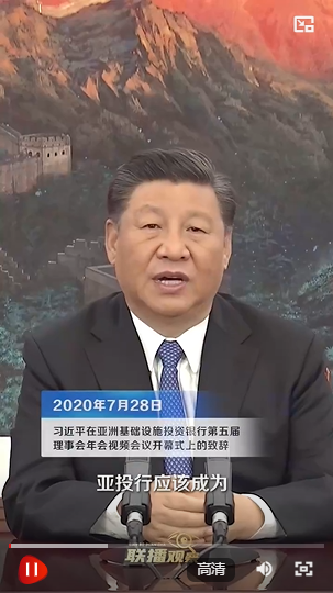 “亚投行应该成为促进成员共同发展、推动构建人类命运共同体的新平台。”2020年7月28日,习近平主席在亚洲基础设施投资银行第五届理事会年会视频会议开幕式上发表致辞。他强调:“中国将继续同各成员一道支持亚投行、办好亚投行,为国际社会应对风险挑战、实现共同发展作出更大贡献。”